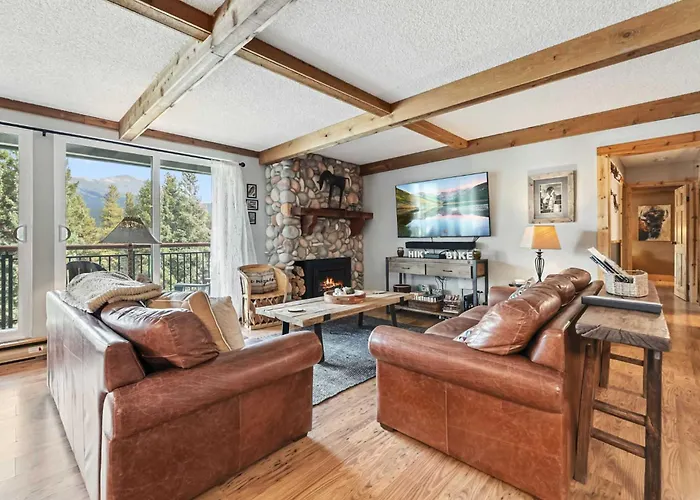 Die Villa Breck Getaway: Views Sauna & Family-Friendly Stay Breckenridge bietet schnellen Zugang zu den Sehenswürdigkeiten der Stadt wie dem Breck Peak 9 Parkplatz (ist 6 Minuten Fußweg von der Unterkunft entfernt). Diese Villa liegt nur 1 km vom Skigebiet Breckenridge und verfügt über eine Terrasse mit Blick auf die Berge.